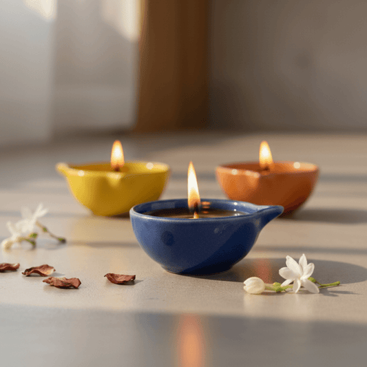 Ceramic Diyas - (Set of 3) Multicolor Glazed