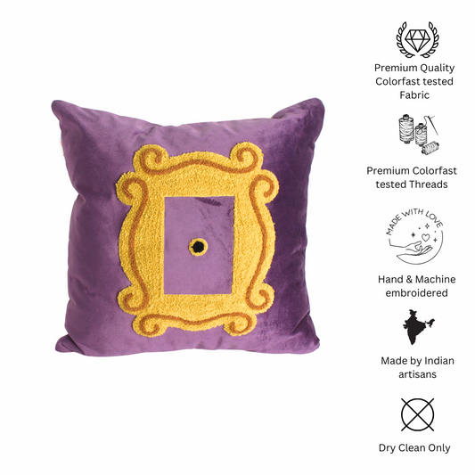 Monica's Door Cushion Cover- (Purple, Yellow Embroidered)
