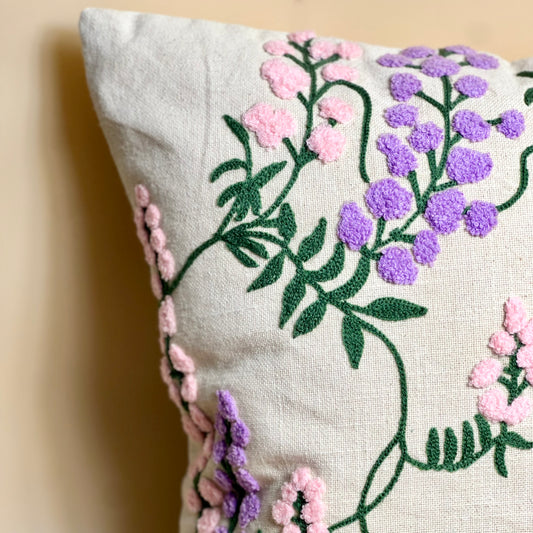 Pastel Blossom Embroidered Cushion Cover - Off white