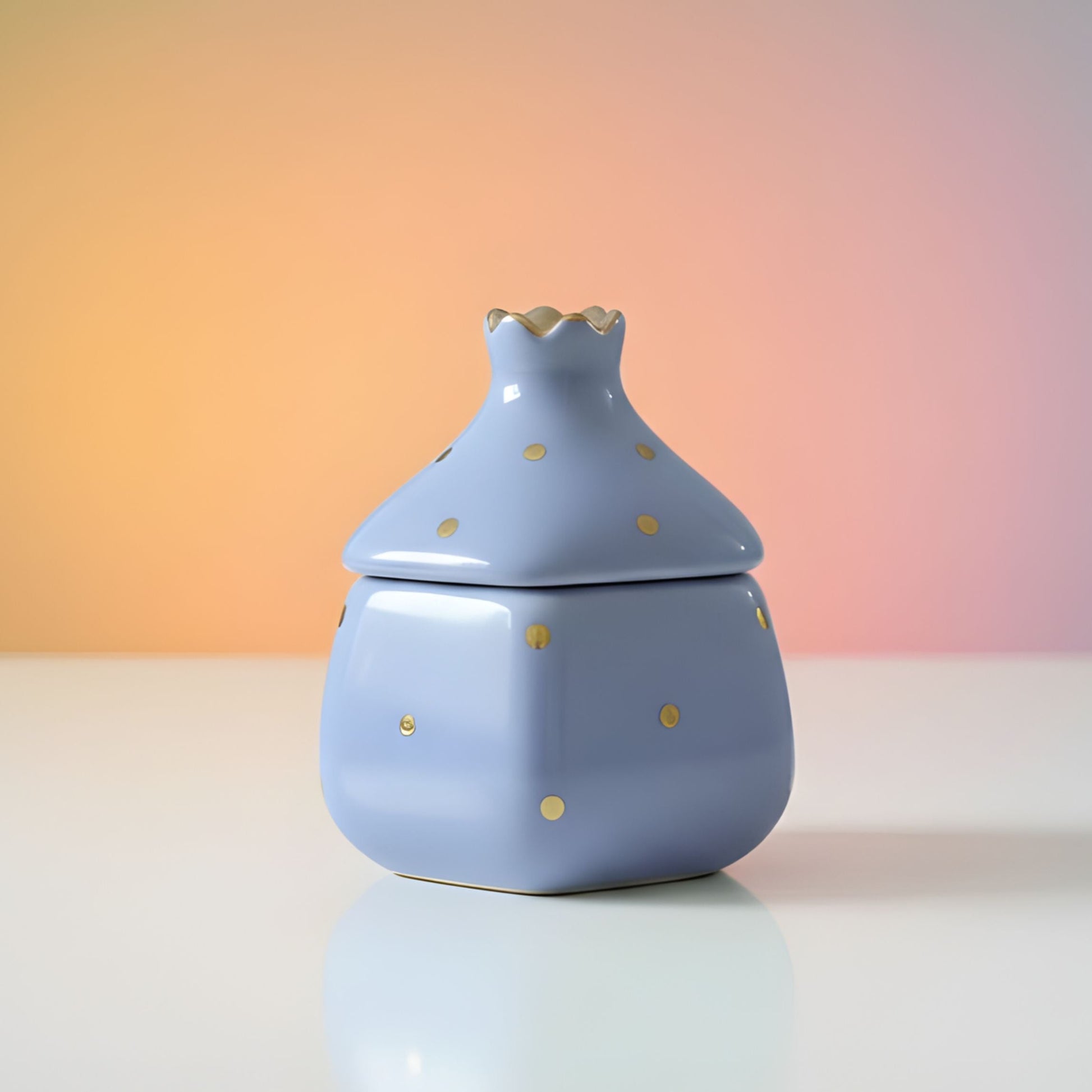 A charming, fruit-inspired trinket jar crafted in smooth glazed ceramic. Its rounded pomegranate shape, textured detailing, and glossy finish make it a beautiful accent for dressers, consoles, and vanities. Perfect for storing rings, earrings, small keepsakes, or even fragrant potpourri. Functional, playful, and decor-friendly — a cute little treasure for any corner of your home.